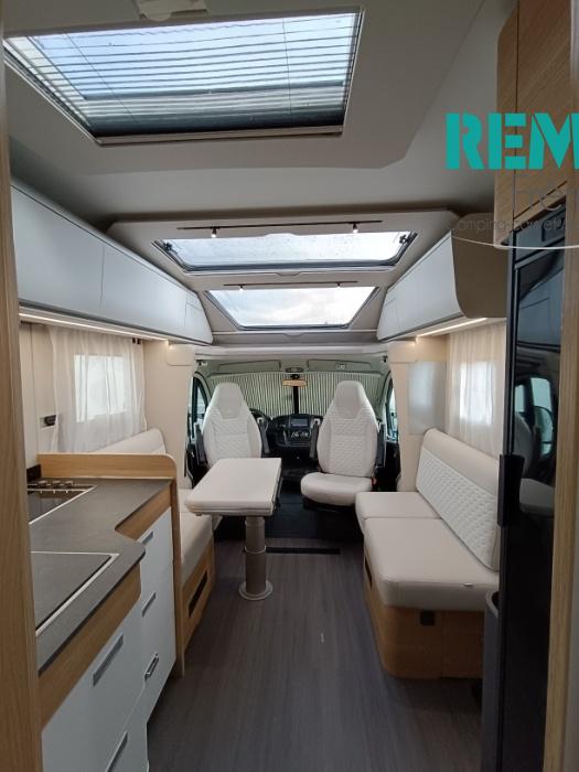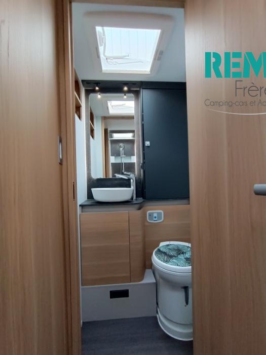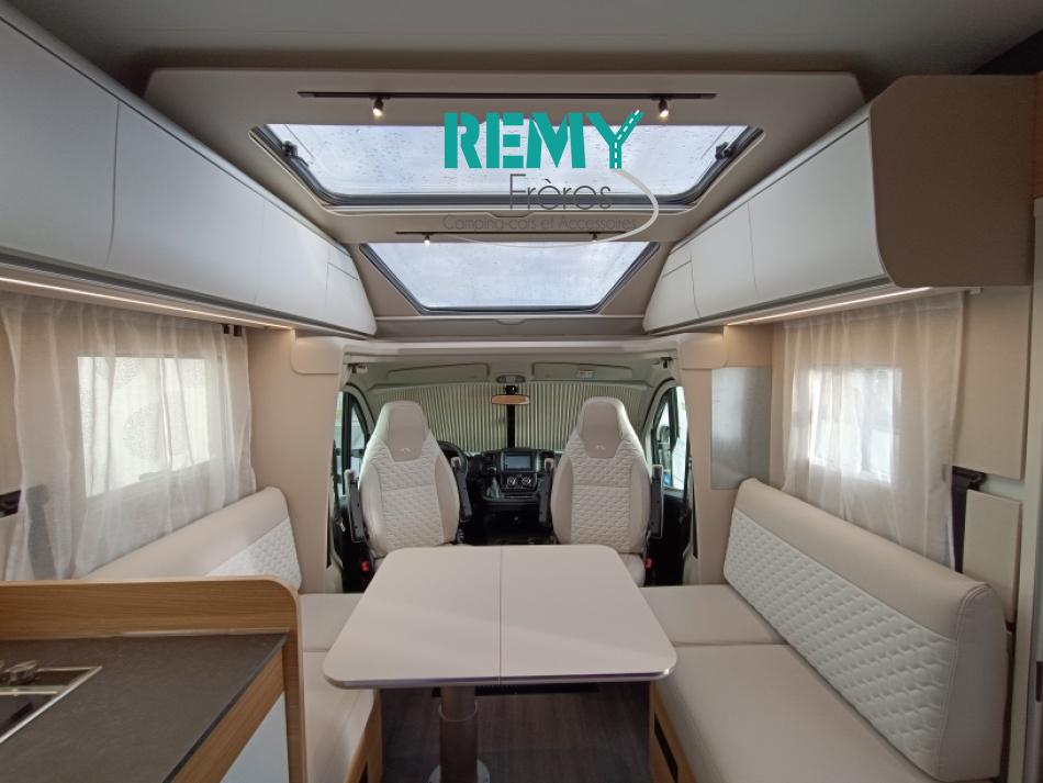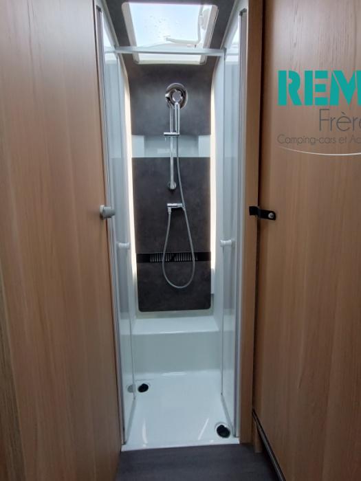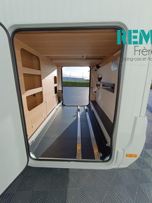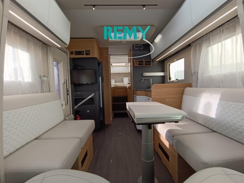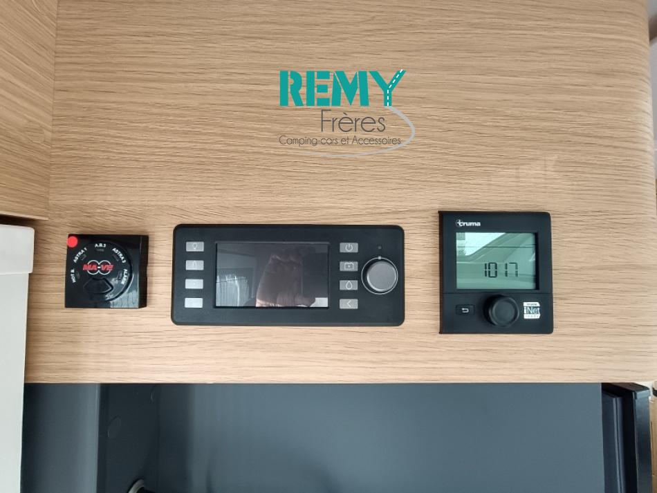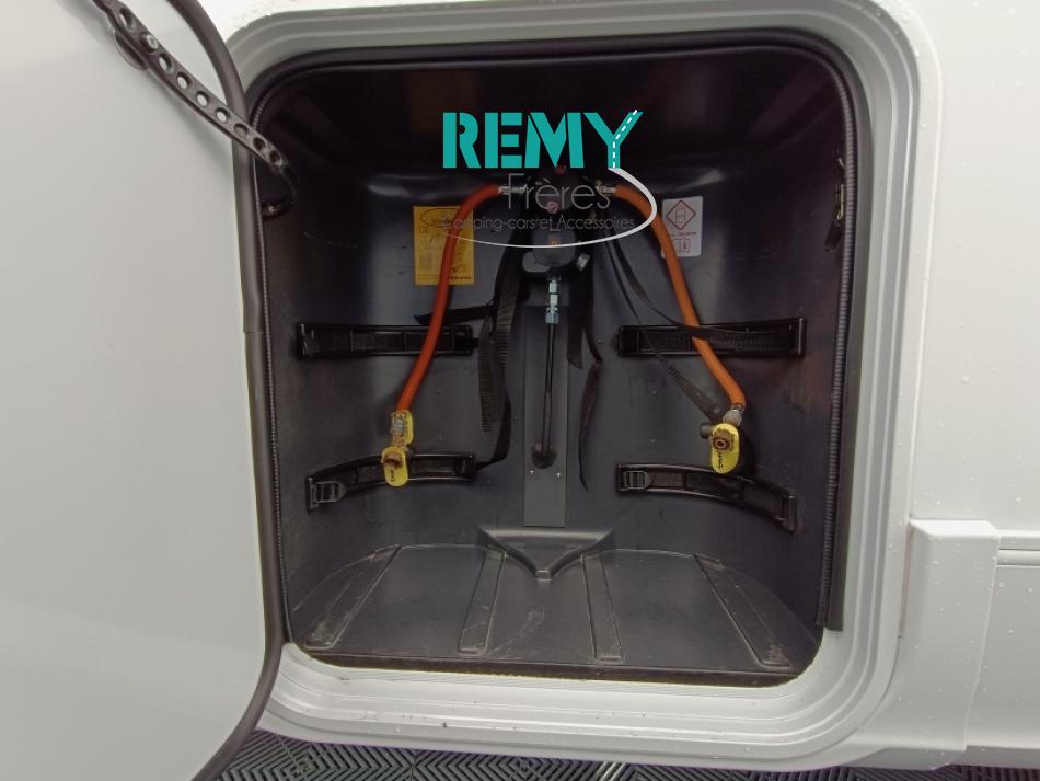 : Duo control, suspension pneumatique, store extérieur, panneau solaire, batterie lithium 150 Ah, convertisseur 2000W porte vélo dans la soute, douchette et prise gaz extérieur, multmédia et caméra de recul.