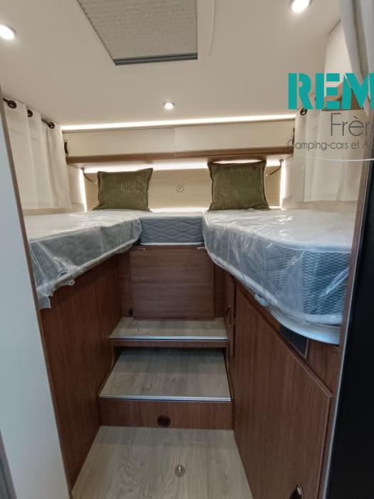 *Pack Confort: traction+, anti brouillard et pare chocs peint, commande au volant+ HP, porte cellule Hartal avec baie, moustiquaire porte cellule, stores plissés cabine, autoradio double DIN, et caméra de recul, rétroviseurs électrique, dégivrants et rabattable, commande digital truma, 2° cle télécommandée, DCDC 40 Ah, batterie cellule lithium 100 Ah, siège cabine réglable en hauteur, vide poche central hotte de cuisine, inversseur de gaz automatique, matelas Evolflex, voilage et coussins déco, toit décaissé.