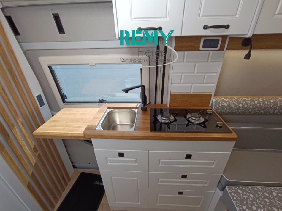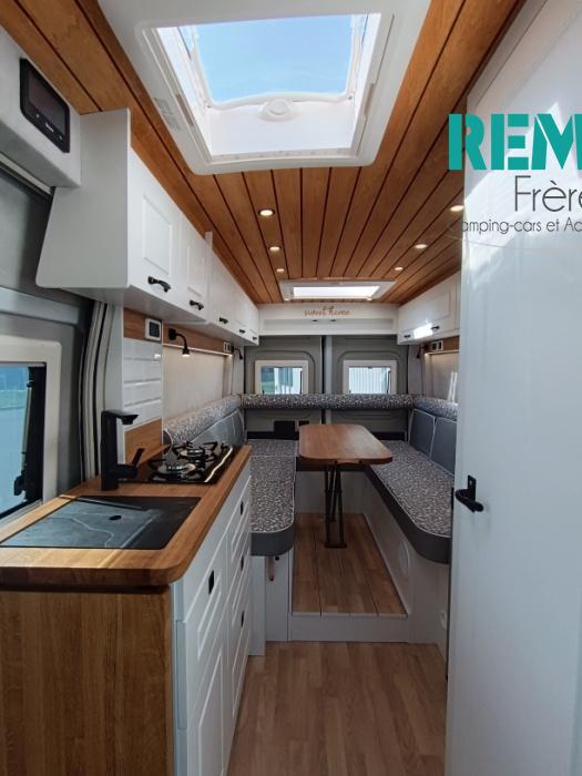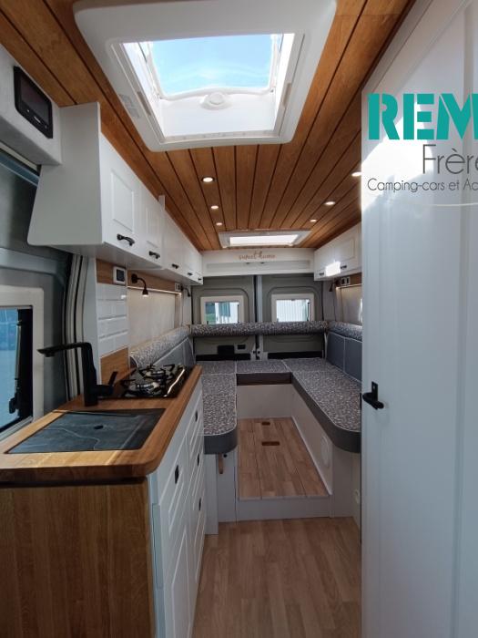 , voyagez léger sans renoncer au confort. Ce fourgon aménagé de moins de 6 mètres combine