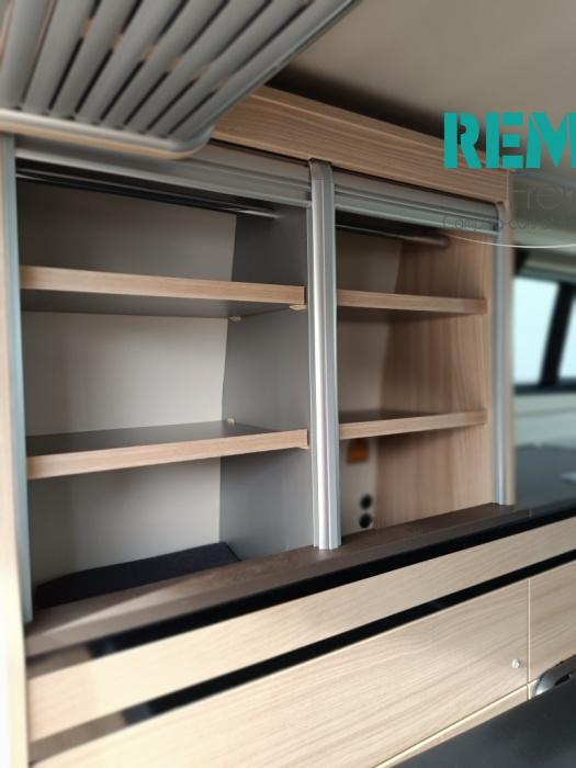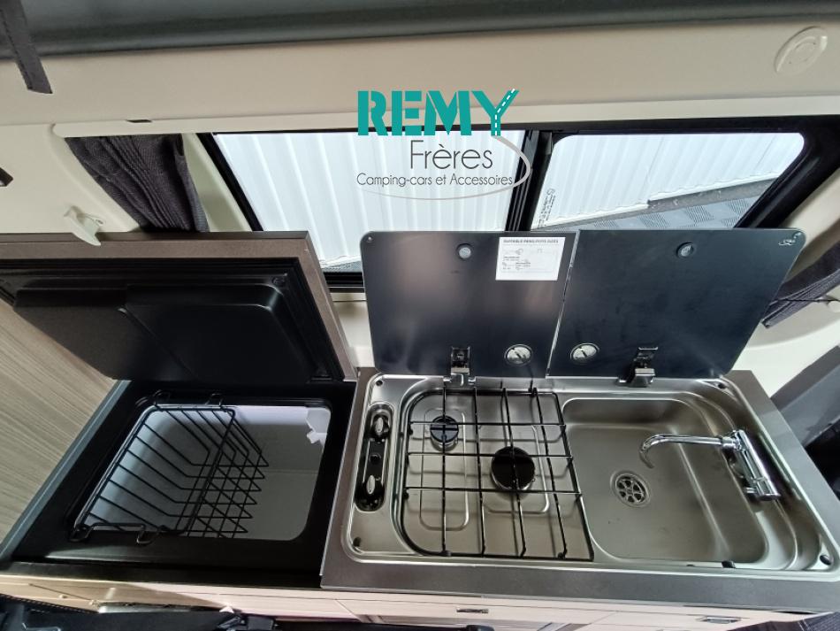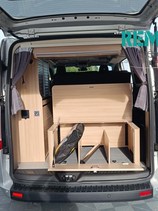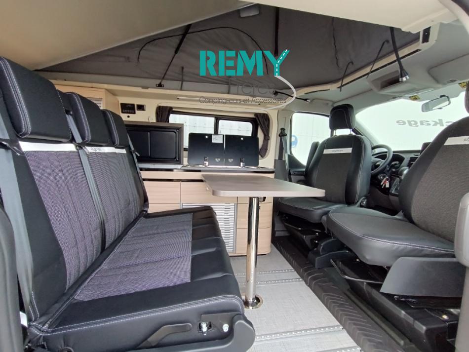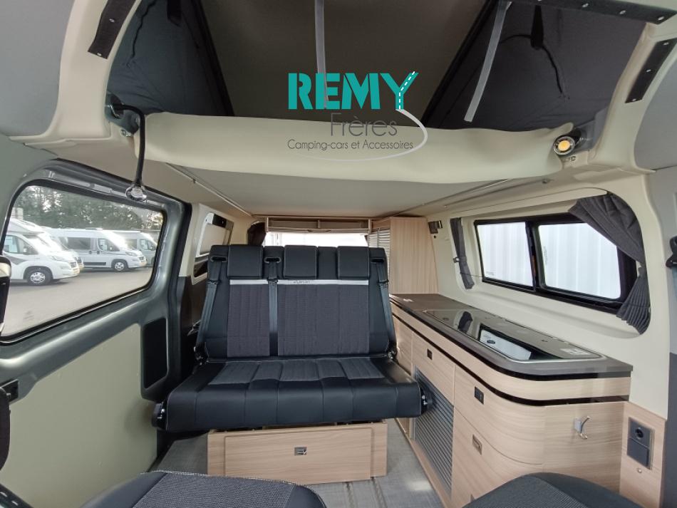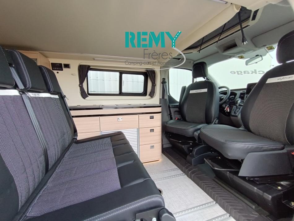 Ce que nous aimons particulièrement : Son toit relevable qui ouvre sur un vrai coin nuit, aéré et lumineux. La banquette convertible en lit douillet pour deux. La cuisine équipée (frigo, réchaud, évier) : de quoi cuisiner simplement, partout. Le chauffage stationnaire pour rester bien au chaud même en hiver. Les sièges pivotants, pour créer un vrai petit salon dès l’étape Une prise en main facile, même pour ceux qui découvrent les vans aménagés